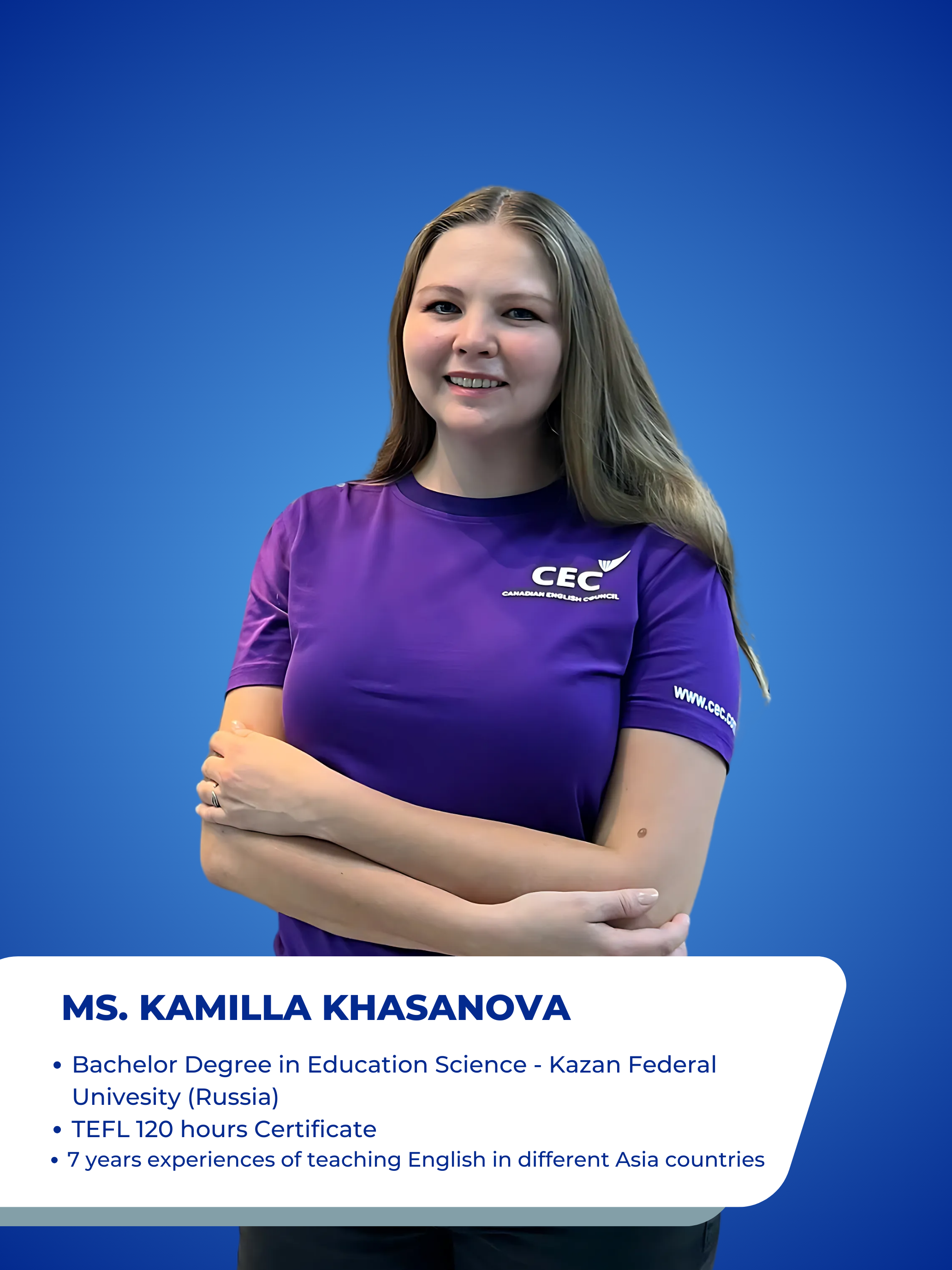 100% Giáo viên tại CEC là giáo viên bản ngữ sở hữu chứng chỉ giảng dạy quốc tế.